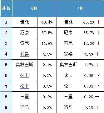¡¡¡¡7ÔÂÊÇÊîÆÚÏúÊÛµÄÍú¼¾£¬ÔÚÕâÒ»Ô£¬ÈýÐǵıíÏÖÓÈΪ³öÉ«£¬ÆäÅÊÉýÖÁÏû·ÑÊýÂëÏà»ú¹Ø×¢ÅÅÐаñµÄµÚÈýÃû£¬³ÉΪ±¾ÔµÚÒ»´óÁÁµã¡£±¾ÔÂÊýÂëÏà»úÊг¡Ö÷ÒªÌØµãÈçÏ£º ¡¡¡¡¡ñÕûÌåÊг¡¹Ø×¢ÈýÐdz¬Ô½¸»Ê¿£¬ÅÅÃûµÚËÄ¡£ ¡¡¡¡¡ñÏû·ÑÏà»úÊг¡ÈýÐÇÅÅÐеÚÈý£¬Ä῵Í˾ӵÚÁù£¬¿¨Î÷Å·ÖØ»ØÇ°Ê®¡£ ¡¡¡¡¡ñµ¥·´Êг¡¼ÑÄÜÔÙ´ÎÇÖÊ´Ä῵£¬Ë÷Äá¹Ø×¢±ÈÀýÖØ»Ø12%¡£ ¡¡¡¡¡ñÐýתÆÁÓ볤½¹Ïà»ú¹Ø×¢¶È³öÏÖתÕÛ£¬¸ßÇåÉãÏñÏà»ú¼ÌÐøÊܳ衣 ¡¡¡¡¡ñÏû·ÑÏà»úÊг¡1500-2000Ôª¼ÛÎ»ÖØ¶á×îÊܹØ×¢Çø¼ä¡£ ¡¡¡¡¡ñµ¥·´Êг¡3000-6000Ôª¼Ûλ¹Ø×¢¶ÈÔÙ´´Ð¸ߡ£ ¡¡¡¡Ò»¡¢Æ·ÅƹØ×¢£ºÈýÐdzÉÏû·ÑDCµÚÈý ¡¡¡¡1¡¢ÕûÌåÊг¡£ºÈýÐdz¬Ô½¸»Ê¿ ¡¡¡¡ ¡¡¡¡2009Äê7ÔÂÖйúÊг¡×îÊܹØ×¢µÄÊ®´óÊýÂëÏà»úÆ·ÅÆ ¡¡¡¡7ÔÂÊýÂëÏà»úÕûÌåÊг¡¹Ø×¢ÖÐ×îÃ÷ÏԵı仯¾ÍÊÇÈýÐÇÅÅÔÚÁ˸»Ê¿Ö®Ç°£¬ÃûÁеÚËÄ£¬ÕâÊÇÈýÐǰëÄêÒÔÀ´ÔÚÊýÂëÏà»úÊг¡×îºÃµÄ³É¼¨¡£ ¡¡¡¡Ç°Èý´óÆ·ÅÆ¨D¨D¼ÑÄÜ¡¢Ë÷Äá¡¢Ä῵µÄ¹Ø×¢¶È·Ö±ðΪ37.8%¡¢18.5%¡¢13.7%£¬ÈýÐDZ¾ÔÂÒÔ0.1%µÄÓÅÊÆ³¬Ô½¸»Ê¿£¬¸»Ê¿±¾Ô¹Ø×¢¶ÈΪ6.1%£¬ÅÅÃûµÚÎå¡£ºóÃæËÉÏ¡¢°ÂÁÖ°Í˹¡¢¿Â´ï¡¢±öµÃ¡¢°®¹úÕß·Ö±ð¾ÓÓÚµÚÁùÖÁµÚÊ®£¬ÅÅλ¾ùÓëÉÏÔÂÏàͬ¡£ ¡¡¡¡ÈýÐdz¬Ô½¸»Ê¿ºó£¬ÓëËÉϵÄÓÅÊÆ´ïµ½0.8%£¬Ê¹µÃÆäÔÚ½ñÄêÊîÆÚÖÐÕ¼µÃÏÈ»ú¡£ ¡¡¡¡ ¡¡¡¡¶Ô±ÈÁ½Ô£¬¼ÑÄÜ¡¢Ë÷Äá¡¢ÈýÐǵĹØ×¢¶ÈÓÐËùÌáÉý£¬µ«·ù¶ÈÓÐÏÞ£¬¸»Ê¿¡¢±öµÃµÄ¹Ø×¢¶ÈÈÔΪ6.1%ºÍ1.4%£¬ÓëÉÏÔÂÏà±ÈûÓб仯¡£ÆäÓà5¸öÆ·ÅÆ¹Ø×¢¶ÈϽµ£¬½µ·ù×î´óµÄÊÇÄ῵£¬´ïµ½1.6%£¬ÆäÓàÆ·ÅÆ½µ·ù¾ùÔÚ0.2%-0.3%¡£ ¡¡¡¡2¡¢Ïû·ÑÏà»úÊг¡£ºÈýÐÇÔ¾¾ÓµÚÈý ¡¡¡¡ ¡¡¡¡2009Äê7ÔÂÖйúÊг¡×îÊܹØ×¢µÄÊ®´óÏû·ÑÊýÂëÏà»úÆ·ÅÆ ¡¡¡¡Ïû·ÑÏà»úÊг¡¹Ø×¢ÅÅÃû±¾Ô±仯ºÜ´ó£¬Ö÷ÒªÌåÏÖÔÚÈýÐÇÔ¾¾ÓÅÅÐаñµÄµÚÈýÃû£¬¶øÀÏÅÆ³§ÉÌÄ῵±¾ÔÂÍËÖÁÁ˵ÚÁù£¬ÕâÒ²ÊÇÄ῵°ëÄêÀ´×îΪ²ÒÖØµÄÒ»´Î¡£ÊÜ´ËÓ°Ï죬¸»Ê¿±¾ÔÂÍ˺óһ룬ÅÅÃûµÚËÄ£¬¶øËÉÏÂǰ½øÒ»Î»£¬ÅÅÃûµÚÎå¡£´ËÍâÔÚÅÅÐаñÉÏÏûʧºÜ¾ÃµÄ¿¨Î÷Å·±¾ÔÂÔÙ´ÎÏÔÏÖ£¬Æäƾ½èZ29¡¢S12µÈ»úÐ͵ĹØ×¢¶¥ÌæÏÂÀí¹â£¬ÅÅÃûµÚÊ®¡£ ¡¡¡¡ ¡¡¡¡ÓëÉÏÔÂÏà±È£¬¹Ø×¢¶ÈÉÏÉýµÄÓÐ4¸öÆ·ÅÆ¨D¨D¼ÑÄÜ¡¢Ë÷Äá¡¢ÈýÐÇ¡¢¿¨Î÷Å·£¬ÆäÖÐË÷Äá¹Ø×¢¶ÈÉÏÉý×î¶à£¬´ïµ½1.6%¡£¹Ø×¢¶ÈϽµµÄÆ·ÅÆÖУ¬Ä῵³ÉΪÁË¡°Ô©´óÍ·¡±£¬½öÆäÒ»¼Ò¹Ø×¢¶ÈϽµ´ï1%£¬ÆäÓàÆ·ÅÆÏ½µ¾ùÔÚ0.5%ÒÔÄÚ¡£ ¡¡¡¡×ܵÄÀ´Ëµ£¬±¾ÔÂÏû·ÑÏà»úÊг¡ÒÔÈýÐǵĽø²½ºÍÄ῵µÄÔÝʱʧÀûÎªÌØÕ÷¡£ ¡¡¡¡3¡¢µ¥·´Ïà»úÊг¡£º¼ÑÄÜÔÙ´ÎÇÖÊ´Ä῵ ¡¡¡¡ ¡¡¡¡2009Äê7ÔÂÖйúÊг¡×îÊܹØ×¢µÄÊ®´óµ¥·´ÊýÂëÏà»úÆ·ÅÆ ¡¡¡¡±¾Ôµ¥·´Êг¡µÄ¹Ø×¢ÅÅÃûûÓб仯£¬¾Å´óÆ·ÅÆÒÀÈ»ÊÇ6ÔµÄÅÅÃû£¬±È½ÏÃ÷ÏԵı仯ÊǼÑÄܵĹØ×¢¶ÈÉýÖÁ45%ÒÔÉÏ£¬Ë÷ÄáµÄ¹Ø×¢¶ÈÉýÖÁ12%ÒÔÉÏ£¬ÁíÍ⣬ÊÊÂíµÄ¹Ø×¢¶ÈÊܵ½Åż·£¬±¾Ô¹Ø×¢¶ÈËõ¼õÖÁ0.1%¡£ ¡¡¡¡ ¡¡¡¡ÓëÉÏÔ¶Աȣ¬³ý¼ÑÄܺÍË÷ÄáÍ⣬±¾Ô±öµÃµÄ¹Ø×¢¶ÈÒ²ÓÐËùÉÏÉý£¬Èý¸öÆ·ÅÆµÄ¹Ø×¢¶È·Ö±ðÌá¸ß1.8%¡¢0.2%¡¢0.2%¡£¼ÑÄÜ1.8%µÄ½ø²½Ò²ÊDZ¾Ô¸÷ÁìÓò¸÷Æ·ÅÆÏà»úÖÐ×îÏÔÖøµÄ½ø²½£¬¶øË÷ÄáÆ¾½èÕâ0.2%£¬Ò²Íì»ØÁËÒ»²½ÏÈǰ¹Ø×¢¶ÈµÄËðʧ¡£ ¡¡¡¡Óë´Ëͬʱ£¬Ä῵Óë°ÂÁÖ°Í˹µÄ¹Ø×¢¶È·Ö±ð½µµÍ1.8%ºÍ0.4%¡£ÓÉ´Ë¿ÉÒÔ¿´³ö¼ÑÄܺÍÄ῵Õâ¶Ôµ¥·´Êг¡µÄÔ©¼Ò£¬¹Ø×¢¶È±íÏÖÏòÀ´ÊÇÏà·´£¬±¾Ô¼ÑÄÜÓÖÍêÈ«³Ô½øÄ῵ËðʧµÄ¹Ø×¢¶È£¬ÎÞÒɽøÒ»²½¼Ó¾çÁ˶þÕߵľºÕù¡£ ¡¡¡¡×ܵÄÀ´Ëµ£¬±¾Ôµ¥·´Êг¡µÄ¿´µã±È½ÏÁãÉ¢£¬·Ö±ðÔÚÓÚ¼ÑÄÜÓëÄ῵¡¢Ë÷Äá¡¢ÊÊÂí¡£ ¡¡¡¡¶þ¡¢²úÆ·½á¹¹¹Ø×¢£º¸ßÇåÉãÏñÔ½·¢ÊÜ³è ¡¡¡¡1¡¢ÐýתÆÁÏà»ú ¡¡¡¡ 2009Äê6ÔÂ-7ÔÂÖйúÊг¡ÐýתÆÁÏà»ú¹Ø×¢±ÈÀý¶Ô±È ¡¡¡¡Ëæ×Åʱ¼ä½øÈëÄêÖУ¬ÐýתÆÁÏà»úµÄ¹Ø×¢Öð½¥Ç÷ÓÚÆ½ÎÈ£¬Ã»ÓÐÁËÉϰëÄê¹Ø×¢¶ÈÖð½¥ÅÊÉýµÄÌ¬ÊÆ¡£7ÔÂÐýתÆÁÏà»úµÄ¹Ø×¢¶È¶¨¸ñΪ6.5%£¬½ÏÉÏÔ½µµÍ0.4%¡£ÔÚ¶àÊýÓû§¿´À´£¬±Ï¾¹ÐýתÆÁÈÔÊôÓÚСÖÚ²úÆ·£¬ÇÒÓ¦ÓÃÖÐÊÜÏ޽϶࣬Òò¶ø¹Ø×¢¶Èȱ·¦½øÒ»²½ÌáÉýµÄ¶¯Á¦¡£ ¡¡¡¡2¡¢³¤½¹Ïà»ú ¡¡¡¡ 2009Äê6ÔÂ-7ÔÂÖйúÊг¡³¤½¹Ïà»ú¹Ø×¢±ÈÀý¶Ô±È ¡¡¡¡Óû§¶Ô³¤½¹Ïà»úµÄ¹Ø×¢7ÔÂÒ²½øÈëÒ»¸öתÕ۵㣬ÔÚ6Ô¹Ø×¢¶ÈÉýÖÁ28.8%ºó£¬7ÔµĹØ×¢¶ÈûÓмÌÐøÅÊÉý£¬¶øÊÇϽµ1.5%£¬ÂäΪ27.3%¡£ZDCÈÏΪ£¬ÕâÓëÉϰëÄ곤½¹Ïà»úÐÂÆ·ÃæÊÐÒÑÓÐÒ»¶Îʱ¼äÓйأ¬Ö÷Òª²úÆ·¾Àú¹ýÉϰëÄêµÄÊг¡ÏúÊÛÒÑΪ¹ã´óÏû·ÑÕßÊìϤ£¬¶øÏ°ëÄêµÄ²úÆ·ÔÚ7ÔÂʱÓÖÉÐδ³öÏÖ£¬Òò´Ë³öÏÖÁËÕâÒ»¿ÕµµÆÚ¡£ ¡¡¡¡²»¹ý£¬Ëæ×ÅËÉÏ¡¢¸»Ê¿µÈ³§É̽üÀ´·¢²¼Çï¼¾³¤½¹ÐÂÆ·£¬ZDCÔ¤¼Æ8-9Ôµij¤½¹Ïà»ú¹Ø×¢¶È»áÓÐС·ùÉÏÉý£¬Ë